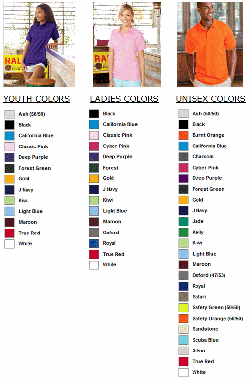 SHORT SLEEVE POLO SHIRT................$15.99* Available in Youth, Ladies, & Unisex *Minimum purchase of 12 pieces.